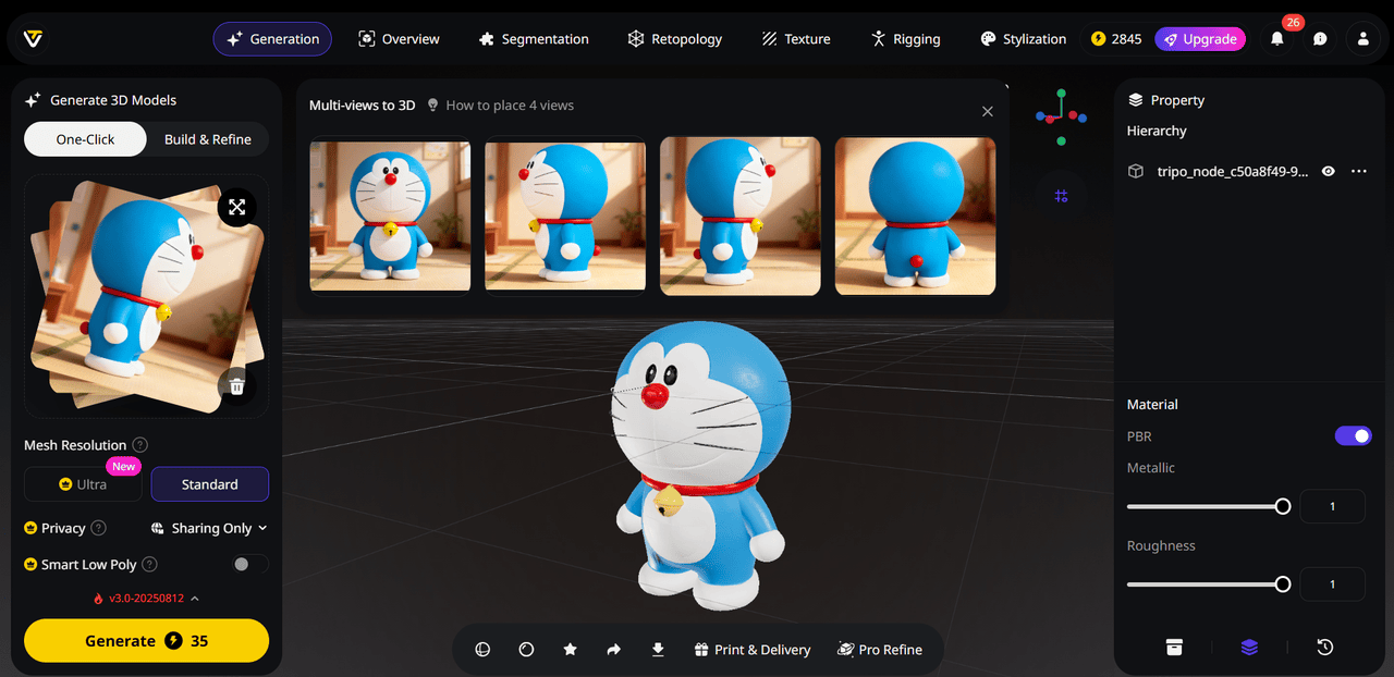 Bringing imagination into a tangible model is often the hardest step. Tripo Studio makes this instant and intuitive. With this AI 3D model generator, you simply describe your idea in natural language, and the system produces a detailed 3D model with high-quality textures. This significantly lowers the barrier for rapid prototyping. For added convenience, the platform can also generate a preview image of the model based on your text prompt.